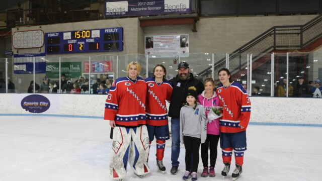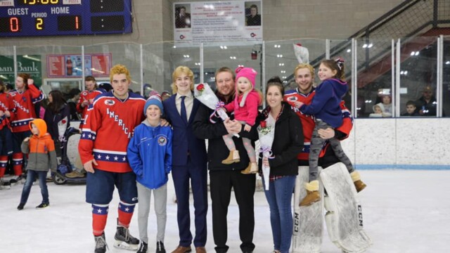 The Great Falls Americans final home game of the season means that it was Family Billet Night at the Great Falls Ice Plex on Saturday evening. During the second intermission, the players and the billet(host) families were recognized and introduced on the ice. The Americans would like to thank all the billet families for hosting our athletes.