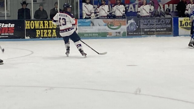 In the third frame, Andrew Deskin’s pass to Tyler Bloom, whose slapshot hit the back of the net during the first two minutes increased the Bighorns lead to 2-0. Bloom scored for the eighteenth time this season. Padraic Whited had the first of his two assists on the first score of the third stanza. The Bighorns showed why they are the second-best team in the NA3HL’s Frontier Division when they tacked on two more goals during a 67-second span. The third and fourth goals by Helena were scored by Mason Eggen and TJ Norris, respectively. Lyndon Orr and Padraic Whited set up Eggen’s score with 12:37 left while Helena native Dylan Cunningham recorded his 20th assist on Norris’ score one minute later. After having an assist in the first twenty minutes, Harlan Wojtusik had another on the final goal of the contest.