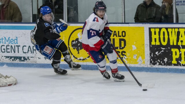 Great Falls gave the home crowd something to cheer for when Aiden Kennedy’s pass to Dmitri Kuleshov for the lamplighter to even the score (1-1) five minutes into the third period. The goal came while the Bighorns were in the sin bin. The top-ranked team in the Frontier Division broke the tie with 2:51 left in regulation when Braden Cunningham scored his 32nd goal for Helena with the game-winning scoring drive set up by Gavin Barr and Cai Robinson. The Bighorns added another goal before time expired when the Americans took out goaltender Kaden Ryder in favor of having an extra attacker on the ice. The empty net score came with under one minute remaining by Finn Theriault. Jason Hammett collected his second assist of the night for coach Damon Hanson’s squad.