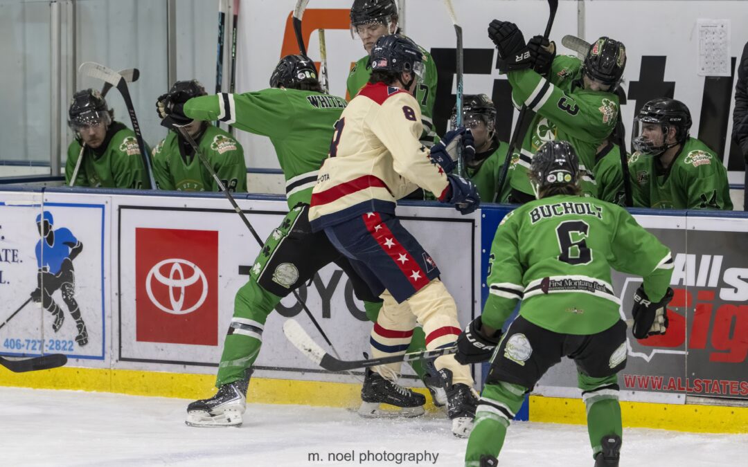 Jacob Avgustovskiy, who played high school hockey in Great Falls, scored two goals and dished out one assist as the Butte Irish came back from two goals down in the third period to down the Great Falls Americans, 4-3 in overtime during Friday’s NA3HL contest at the Butte Community Ice Center in Butte, Montana. Riley Hattan, Cooper Clouse and AJ Prioli each scored for Great Falls in their final regular season road game.