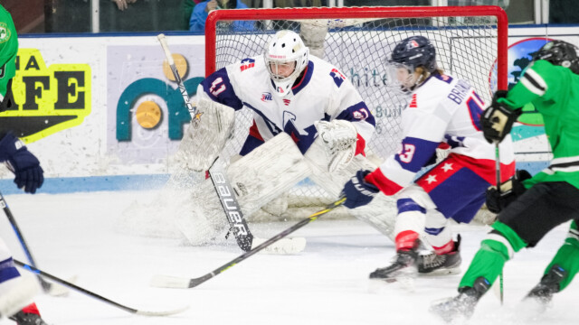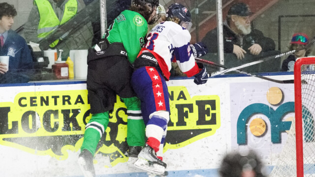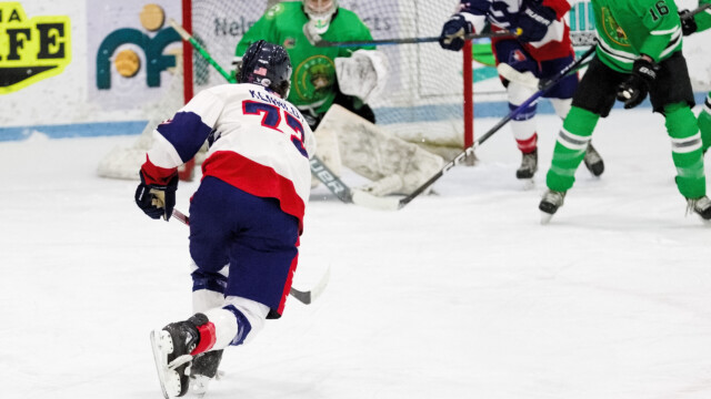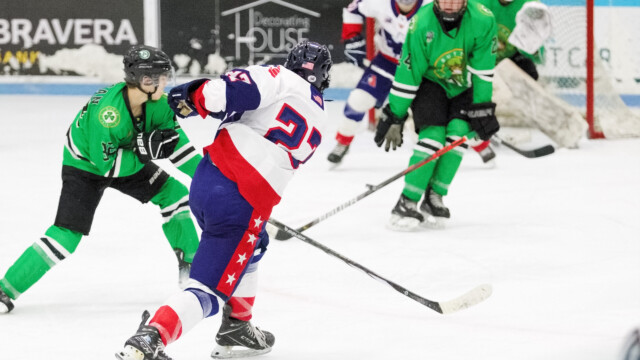 On Friday in Great Falls, the Americans, and Irish traded goals throughout and the host team eventually came away with a 4-3 victory and their third consecutive win after starting the month of November with three losses to the #2 Helena Bighorns (16-2-0-0). Last week, the Americans won two home games against the Sheridan (WY) Hawks to re-start the win streak. Masen Kerr, Dmitri Kuleshov, Tariq Khan and Ty O’Bey put in the goals for the winning team and Kaden Ryhder survived in the net with his seventh victory of the season by swatting away 29 shots (game story).