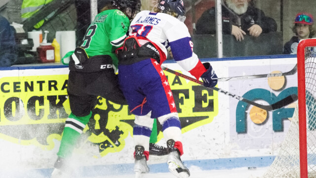 Patrick Crooks secured his 16th goal for the Irish off the stick of teammate Westin Villers 1:46 into the second stanza for the 1-0 lead. Sebe Perez, who along with Zac Orwig came over last weekend in a trade with the Yellowstone (WY) Quake, got the Americans offense going with the game-tying score by driving down the lane eleven minutes later for his first goal of the year. Zac Orwig and Ty Brander each assisted. Perez also played in his 100th career junior hockey game tonight. Butte’s defense allowed the Americans to score twice more before the period expired. Dmitri Kuleshov added a short-handed goal with Ty O’Bey and Phil Harrell assisting and Ty O’Bey chipped in his 15th goal with 68 seconds left. Phil Harrell and Aaron James provided the assists on Great Falls’ third scoring drive of the evening. Each squad scored while the other team was in the penalty box.