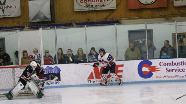 The Great Falls Americans increased their lead to 3-1 when Jack Olson and Brody Boyce added the assists on Dylan Olson’s quick goal 75 seconds into the third period. Bozeman bounced back with a pair of goals 64 seconds apart to tie the contest (3-3) three minutes after the Americans scored their third goal. Luke Hartge registered both goals for the visiting Ice Dogs. Caden Duggan, Caleb Brownell, Tadeas Aulehla and Will Kutch created the assists. Bozeman scored their third unanswered goal two minutes later to give the Ice Dogs their first lead of the night. Bozeman native Duncan McGarrah took advantage of the Americans penalty and scored their third consecutive goal of the final period of regulation in a 3:24 span to lead 4-3. McGarrah’s goal turned out to be the game-winning goal for the Ice Dogs as the final 12:35 of the third meeting between these two squads went scoreless despite many scoring attempts. Caleb Brownell and Tadeas Aulehla received their second assists.