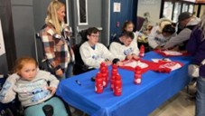 Izzy, Kevin, Quinn, Scarlett, Marley, Luke and Zail joined us from our Sled Hockey Team. Izzy Goldsmith led our team onto the ice being pushed by our Goalkeeper Kale Witt while Kevin Shaver, Luke Hollenback and Zail Frey put on a little demonstration during the first intermission and participated in a competitive “Shoot the puck for Luck”. The highlight of the night was these athletes being available to sign autographs for our fans during the 2nd intermission while also raising a few funds to help offset their costs. It was a very pleasant surprise when our presenting sponsor for the evening, Northwestern Energy, stepped up with their own $500 donation to the cause with a presentation during the first intermission.