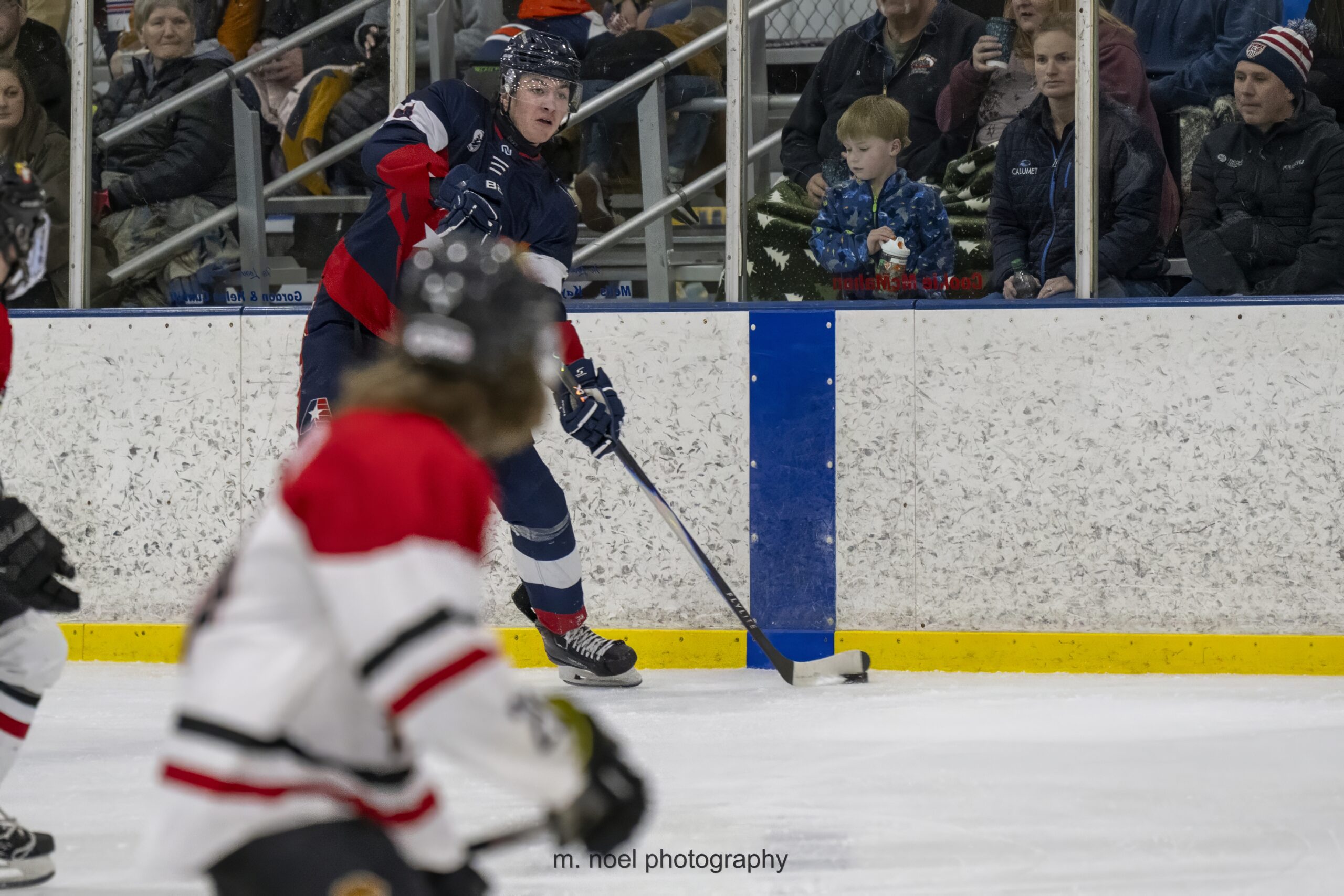 AJ Prioli and Jaxen Savage each scored 77 seconds apart to increase the Americans lead to 5-0 with 7:40 remaining before the second intermission. Tallon Caron and Gordon Jennings took advantage of the Wild in the sin bin and got the puck to Prioli for his 16th goal of the season. Tallon Caron and Fisher Hannesson each added their second assists of the night on the lamplighter by Jaxen Savage. A sixth goal would be made by Colton Bacon with two minutes remaining. Carson Sears and Kiefer Lundmark talllied the assists on Bacon’s third scoring drive of the year. The home team registered one last goal with 31 seconds left when Cooper Clouse tacked on the Americans fourth goal of the middle period with assistance from Gordon Jennings and AJ Prioli. Clouse has now scored in 29 consecutive games (either with an assist and/or a goal) to keep his streak alive.