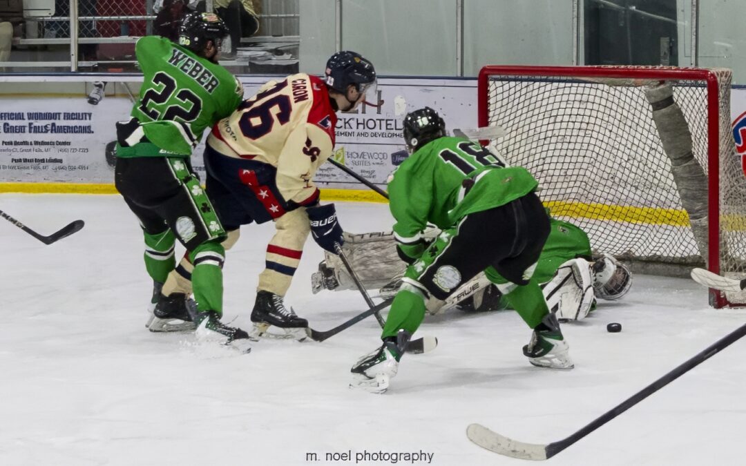 Seven minutes into the last period of regulation, Butte and Great Falls traded goals. Kaleb Ivens scored his first goal of the season as the Irish tied the game, 2-2 with12:23 left. Jack Whitelaw and Andrew James each added their second assists. The Great Falls offense raced down the other way and answered back 22 seconds later with Cooper Clouse earning his third assist of the game and Aidan Mulharen getting his fourth when they found an open Gordon Jennings to help the Americans regain the lead (3-2). The score by Gordon Jennings proved to be the game-winner as both teams skated out the remaining twelve minutes.