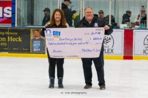 During the first intermission, Americans team owner, Matt Leaf presented Tammy Comer from “Think Pink For the Girls” a check for $1,824.00 as a donation to the local Breast Cancer Support Group as a result of our Breast Cancer Awareness weekend on October 24-25. The Americans have raised around $3,000.00 for a three-year toal of over $10,000.00 for this worthy cause that also included raffle baskets, Jersey Auction and Booster Club 50/50 donations.