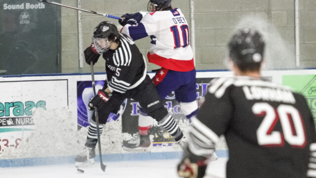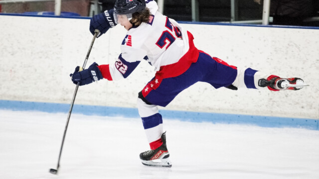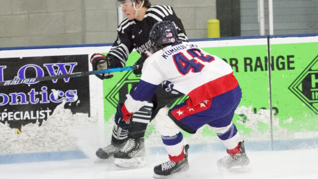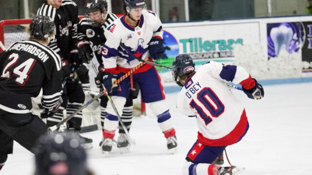Early in the third, Aiden Kennedy assisted on the game-tying score (2-2) by Ty O’Bey during the first three minutes of action. Bodie Shepardson scored the go-ahead (and the eventual game-winning) score midway through the stanza for the Ice Dogs off the stick of teammate Tyler Klingbeil. Ben Fries accumulated his third assist.