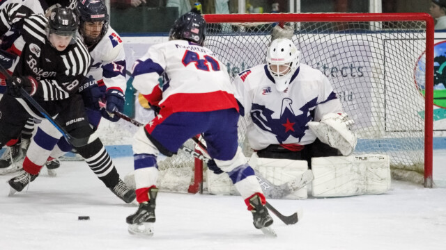 Sean Smer of Bozeman now has two victories when facing the Americans and has an overall 6-1-0-0 record. The second-year Bozeman netminder swatted away 44 shots. Noah Van Herik (0-1-0-0) made his debut as the Americans netminder ended his night with 42 saves.