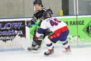 Early in the third, Aiden Kennedy assisted on the game-tying score (2-2) by Ty O’Bey during the first three minutes of action. Bodie Shepardson scored the go-ahead (and the eventual game-winning) score midway through the stanza for the Ice Dogs off the stick of teammate Tyler Klingbeil. Ben Fries accumulated his third assist.