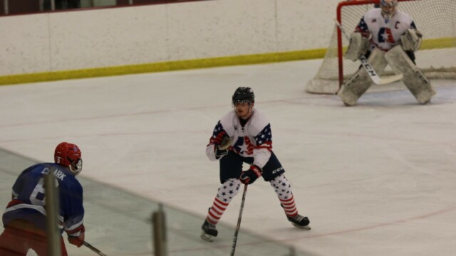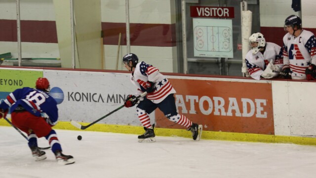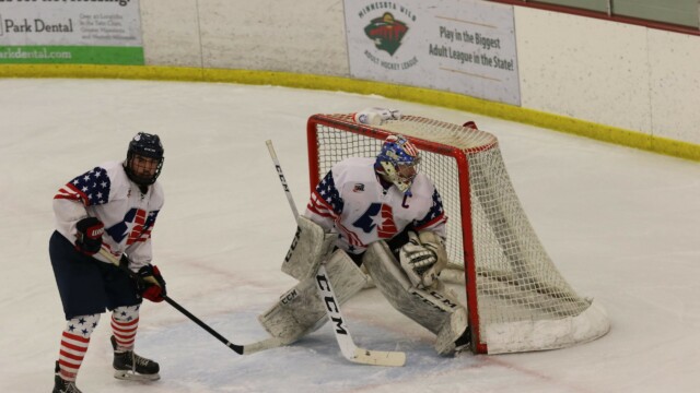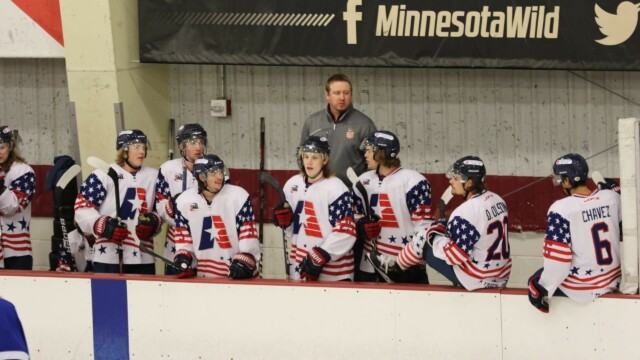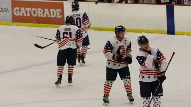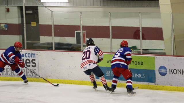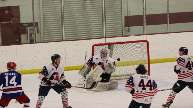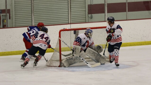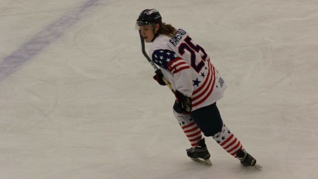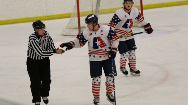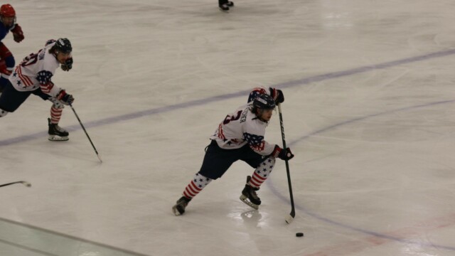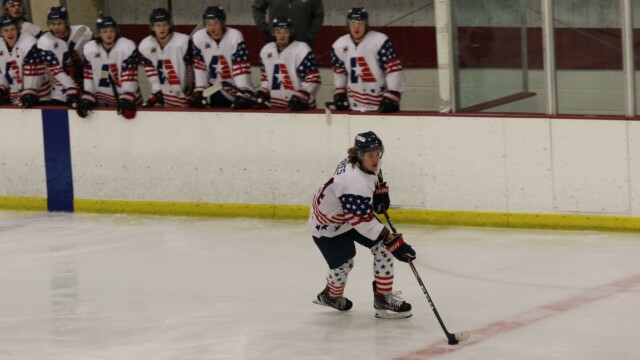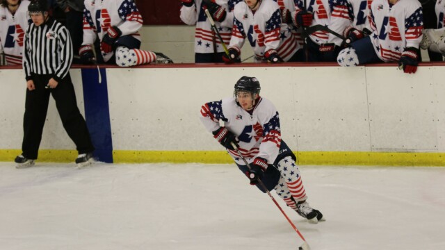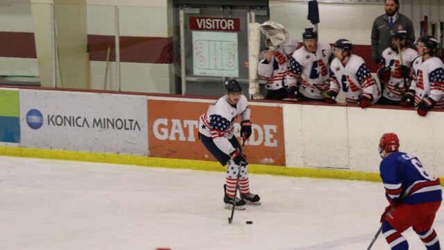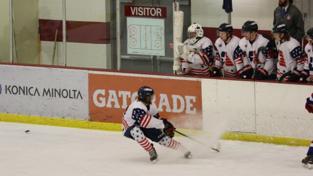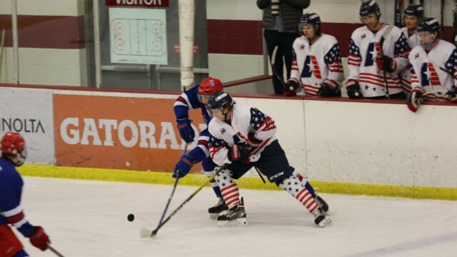 Jake Hayes scored the first goal of the game to put the Americans ahead 1-0 after 26 minutes of scoreless action. The first of two goals via a power play was assisted by Jack Olson, who set up his 31st scoring drive of the season. Each team traded a goal in the last two minutes before the second intermission. Peyton Hughes got the biscuit in the basket on the short-handed goal that was assisted by Japan’s Daisuke Egusa with 1:47 on the clock. The tie game lasted 23 seconds when Levi Mese scored the first of his two goals off the stick of Logan Rachow. The Americans headed into their second break with a 2-1 advantage.