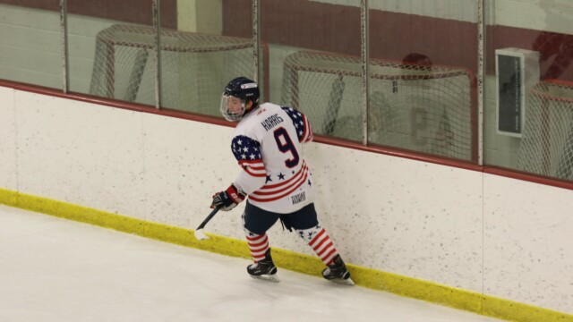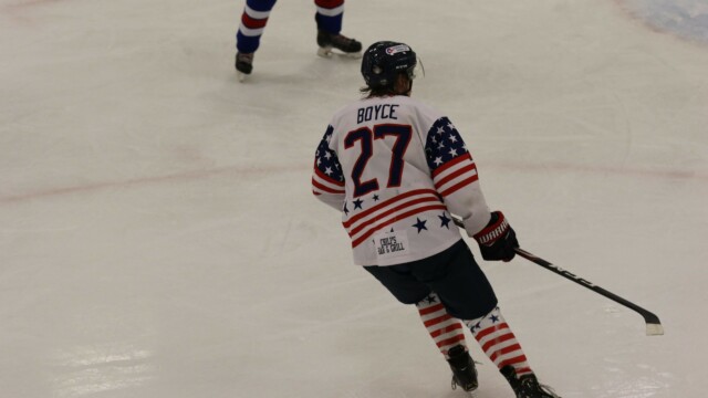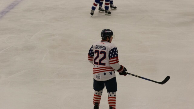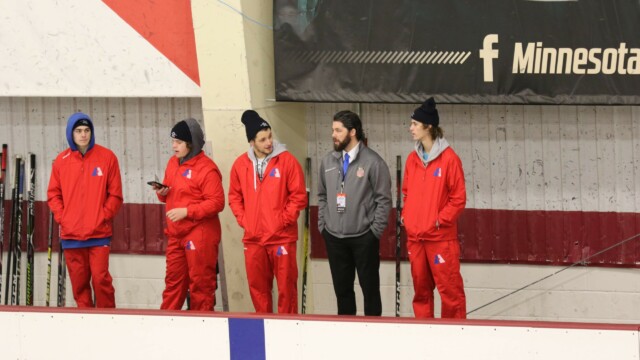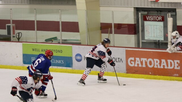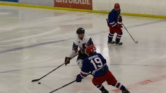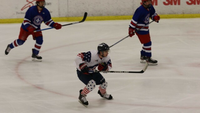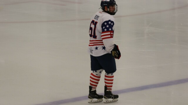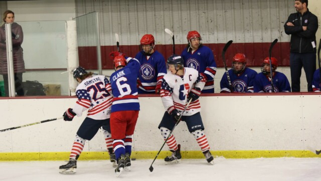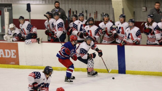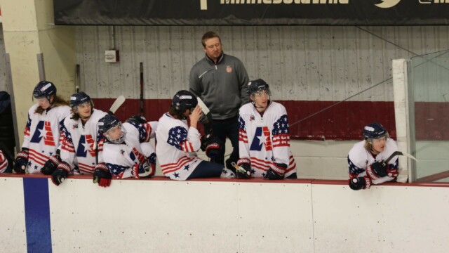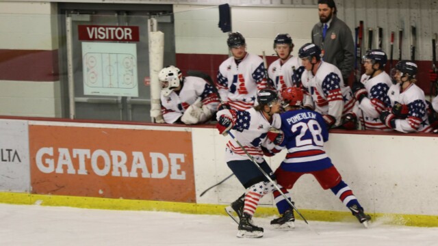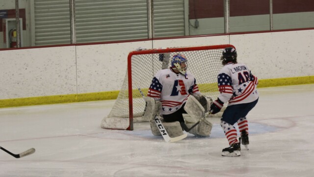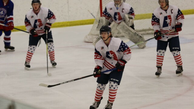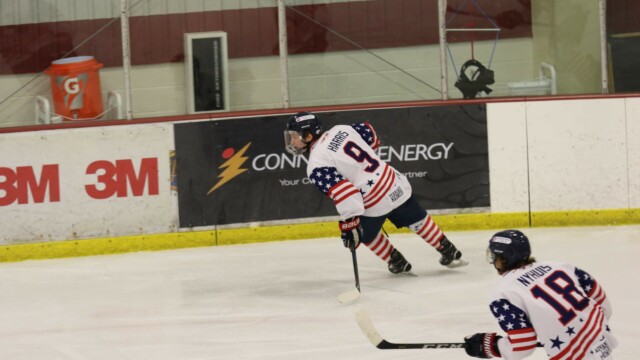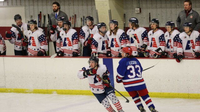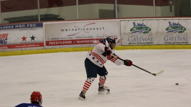 Jake Hayes scored the first goal of the game to put the Americans ahead 1-0 after 26 minutes of scoreless action. The first of two goals via a power play was assisted by Jack Olson, who set up his 31st scoring drive of the season. Each team traded a goal in the last two minutes before the second intermission. Peyton Hughes got the biscuit in the basket on the short-handed goal that was assisted by Japan’s Daisuke Egusa with 1:47 on the clock. The tie game lasted 23 seconds when Levi Mese scored the first of his two goals off the stick of Logan Rachow. The Americans headed into their second break with a 2-1 advantage.