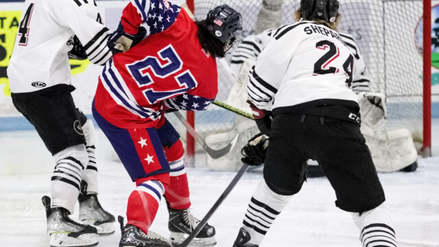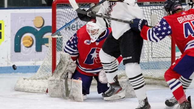 Ty O’Bey scored twice in the middle period to stretch the Americans lead to 3-0. Dmitri Kuleshov assisted on two scoring plays while Phil Harrell and Aaron James each had a hand in the two scoring drives. The Americans and Ice Dogs contributed 25 saves apiece after two periods of action with the home team accruing 17 of the 29 shots before the second intermission.