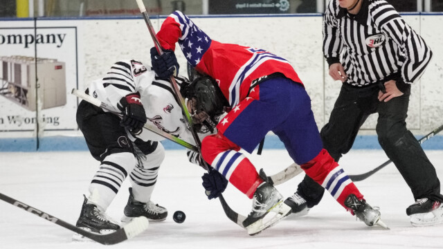 After 48 minutes, the Ice Dogs converted their first goal as Bodie Shepardson collected his 12th assist on Braden Koliha’s goal (seventh overall) to cut the deficit to 3-1. Despite many shot attempts by either team during the final eleven minutes, neither team was able to capitalize on any scoring opportunities.